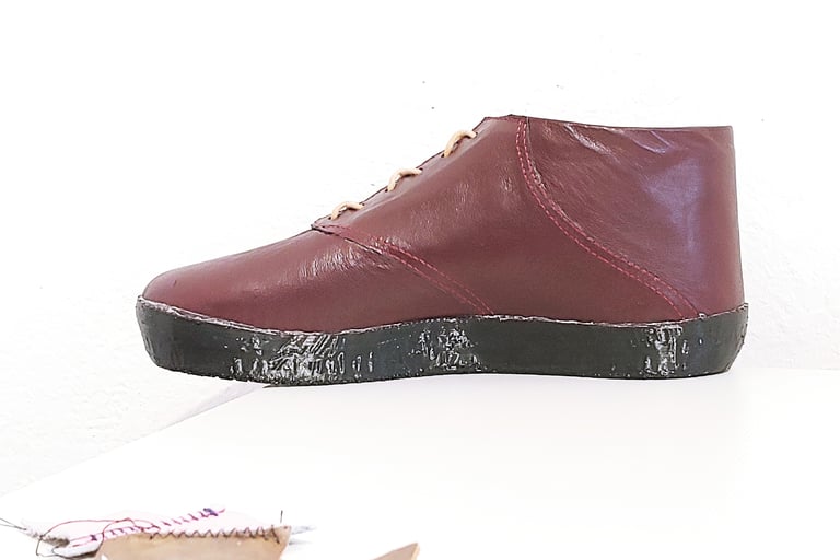 This is the first time I work with the 3D printer, with which I'm capable of printing both shoe lasts and rubber soles. I've done that in this prototype, to test how it goes. I used special technique to stretch the sole on with the help of polyethylene foil. The adhesion is very acceptable with this material, but at it's shore hardness of only 60A and being a thermoplastic it will deteriorate for outside wear. I am looking forward of overcoming this with vulcanized rubber and PU foam, to achieve a higher durability and speed up the manufacture, meanwhile preserving the weight and stability. This requires a CNC-milled aluminum molds.